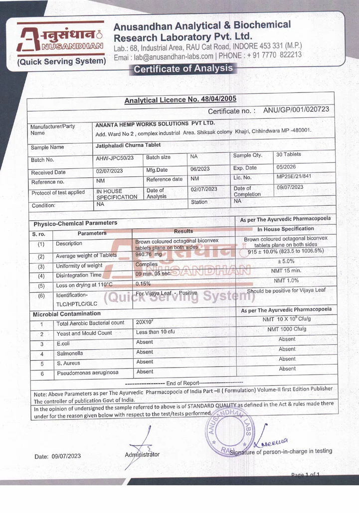Ananta Hemp Jatiphaladi Churna – 30 Tablets