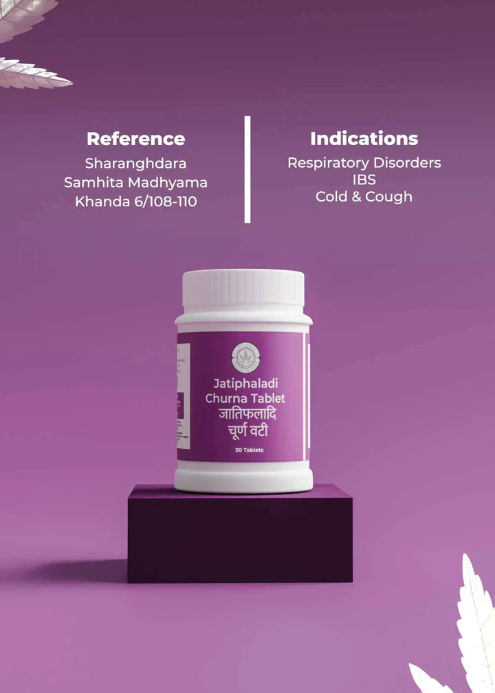 Composition – (Nutmeg, Clove, Ela, Tejpatta, Dalchini, Nagakesara, Camphor, White sandalwood, Sesame seeds, Vanshlochan, Tagara, Amla, Pippali, Talispatra, Harde, Kalonji, Chitraka, Ginger, Vidanga, Black Pepper) 2.5% Each