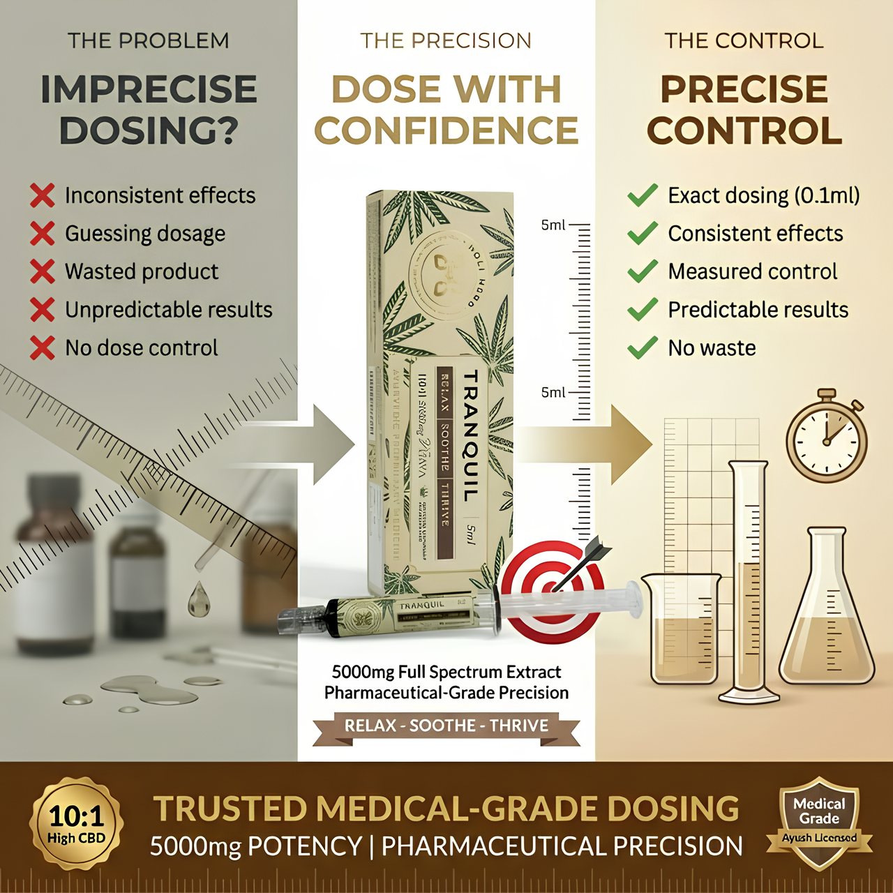 Holi Herb Tranquil is a 10:1 CBD:THC Ayurvedic extract formulated to restore what modern stress drains, your peace, vitality, and internal composure. Each dose utilize 100% full spectrum Vijaya to help you find your quiet in a loud world. AYUSH certified and GMP manufactured.